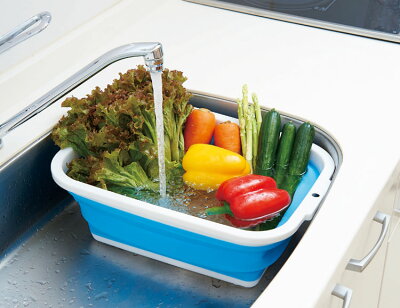 薄く畳める洗い桶 8.5リットル ブルー 90520桶 たためる 防災 掃除 収納 レジャー 食器洗い つけ置き洗い 【D】【B】
